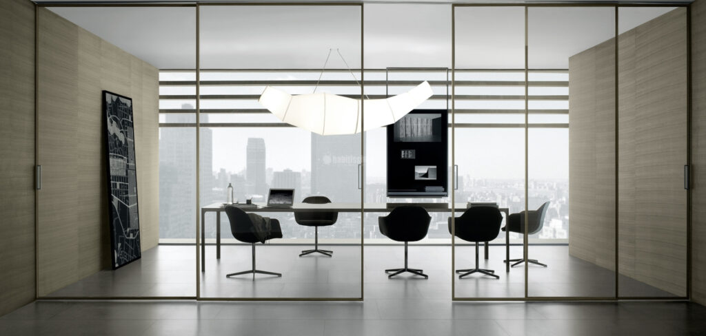 Portas de vidro deixam o ambiente mais sofisticado e são fáceis de harmonizar com qualquer ambiente. Vidros temperados a partir de 8 mm de espessura são os mais adequados para portas de acesso, ou seja, entradas, bem como para divisórias.